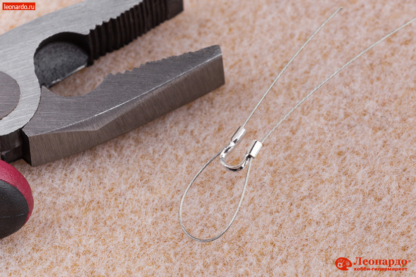 2. Далее продеваем кримп зажимной Zlatka (арт. FMK-X04) сразу на оба конца тросика.