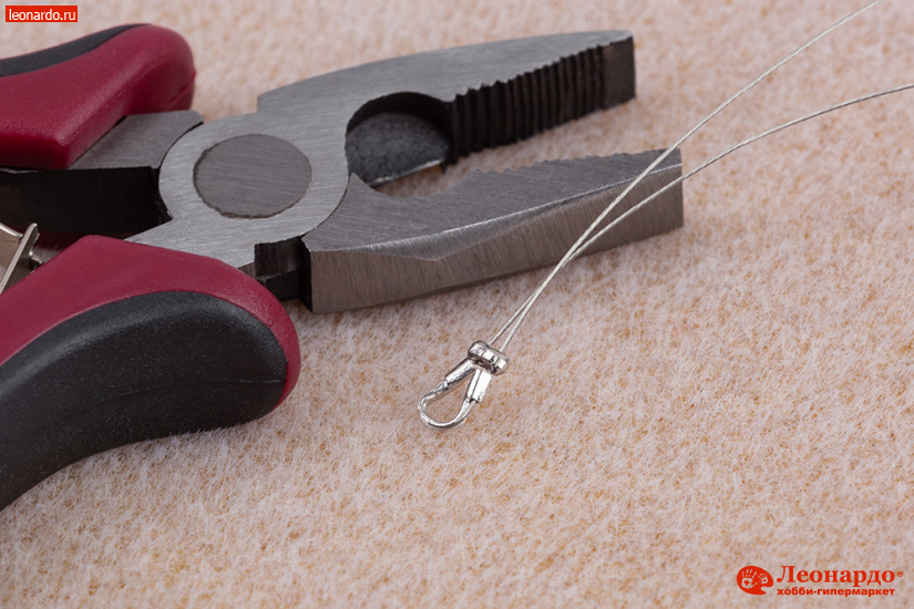 8. Для нити на талию откусываем трос длиной 1,2 м и собираем все по такому же принципу как описано в пунктах с 1 по 7.