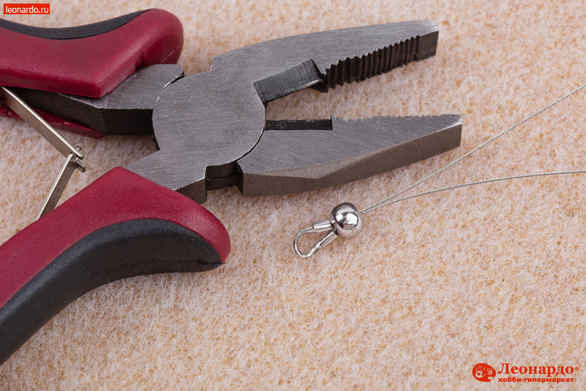 5. Аккуратно зажимаем покрывной кримп пассатижами. Несколько раз со всех сторон, формируя при этом круглую бусину. Сильно не прижимайте, главное не расплющить.