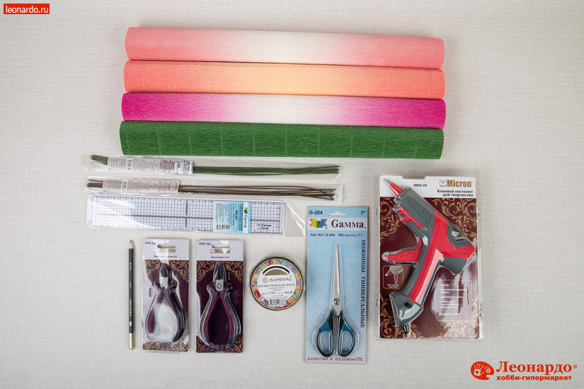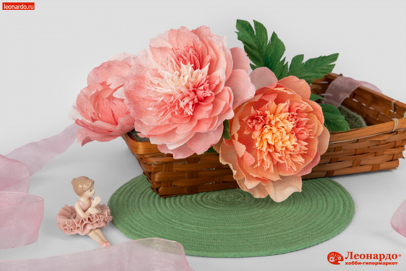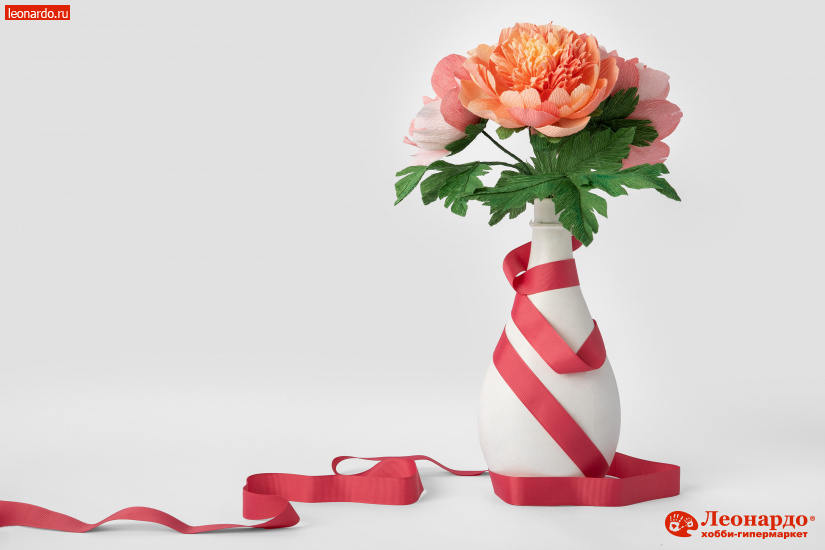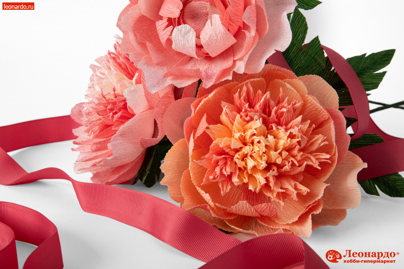 Всем известно, что гофрированная бумага – это великолепный материал для разностороннего творчества. Она имеет складчатую поверхность, которую при необходимости можно выпрямить. Цветы из гофробумаги хорошо смотрятся в качестве интерьерного украшения, подходят для праздничного оформления помещений. Для изготовления цветов хорошо подойдет бумага с плавным переходом цвета. Это избавит от необходимости наносить дополнительную тонировку и сделает лепестки цветов более естественными и живописными. Попробуйте изготовить своими руками букет пионов. Как это сделать расскажет подробный мастер-класс.
