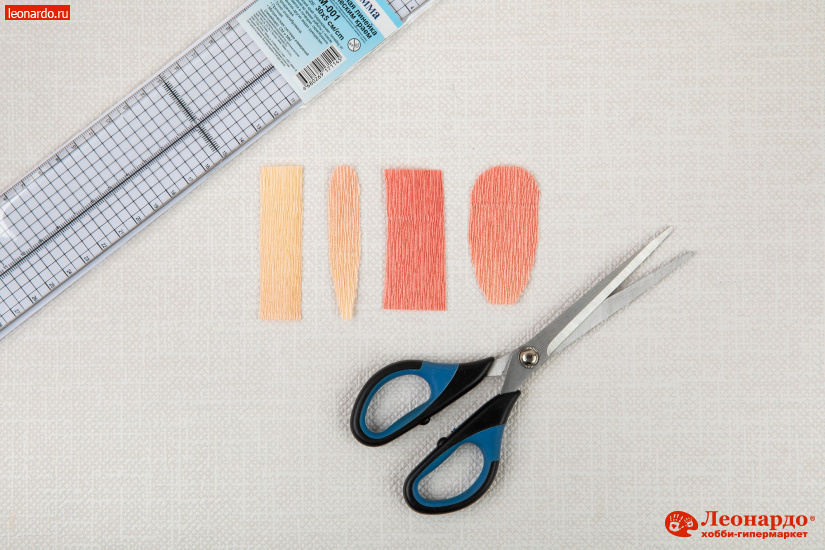 Каждую полоску складываем вертикально пополам и вырезаем лепесток каплеобразной формы.
