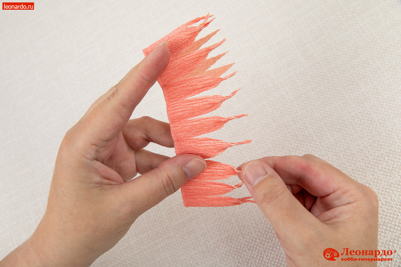 16. Расправляем всю полоску вдоль и вручную подкручиваем острые кончики лепестков.