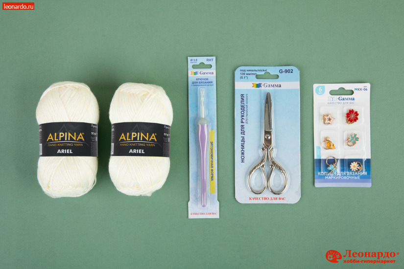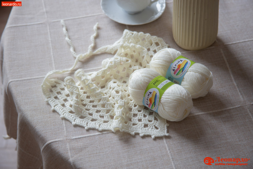 1. Пряжа ALPINA "ARIEL" 98% акрил, 2% пайетки 50 г 150 м ± 10 м 02 экрю