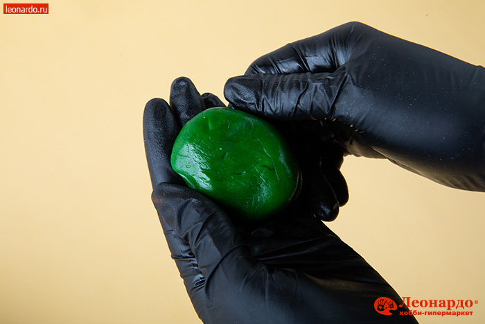 2. Тщательно разминаем массу, чтобы краситель хорошо разошёлся и тесто равномерно прокрасилось. Лучше работать в перчатках, чтобы защитить руки. Тесто приобретает нужный нам цвет.