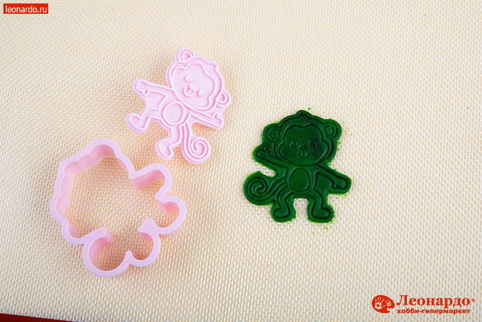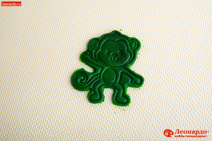 7. Аккуратно поднимаем детали формы – получилась цветная фигурка из теста с рельефной поверхностью. Остальные части теста по аналогии окрашиваем в разные цвета, делаем из них другие фигурки.