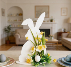 Пасха — время света, надежды и тёплых эмоций. А что если создать символ праздника своими руками? Пользуясь идеей нашего мастер-класса, вы сможете превратить простую деревянную заготовку в форме зайца в очаровательную пасхальную композицию. Белая акриловая краска придаст ей чистоту и лёгкость, а яркие жёлтые цветы — нотку весеннего настроения. Готовый результат украсит стол, станет центром внимания на окне или дополнит интерьер. Просто, красиво, по-домашнему празднично.