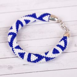 Браслет необычной формы, созданный из бисера с использованием проволоки с эффектом памяти.