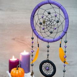 Спелые тыквы и милые летучие мышки в ярком текстильном мобиле, посвященном самому веселому и жуткому празднику – Хэллоуину!