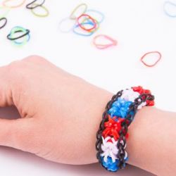 Яркий, радующий взгляды браслетик, сплетенный из резиночек с добавлением бусинок – словно капельки лета у вас на запястье.
