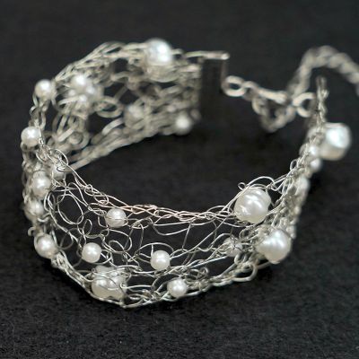 Изящный браслет с обвязанной основой и подвесками своими руками.