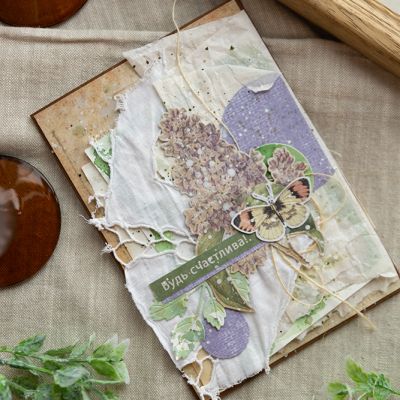 Блокнот с винтажным настроением в технике скрапбукинг с кружевом и вырубками.