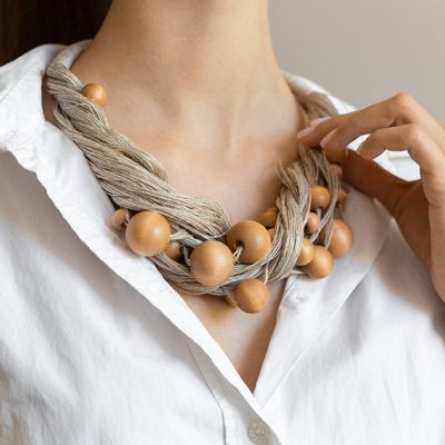 Декорируем деревянными бусинами вазу-банку для оригинальных цветочных композиций.