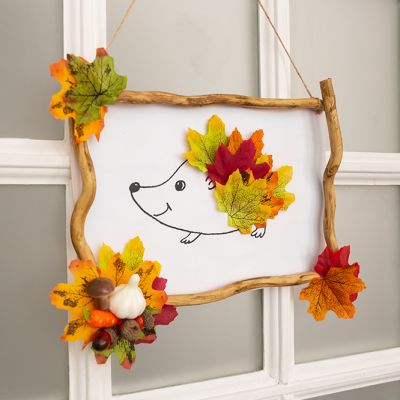 Дополняем интерьер композицией из дубовых листьев и желудей из гофрированной бумаги.