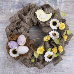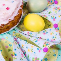 Встречаем Пасху за праздничным столом, украшенным композицией из деревянных заготовок.