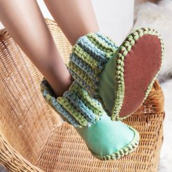 Вяжем при помощи собственных пальцев декоративную подушку из фасонной ленточной пряжи.