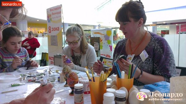 Скоро всех нас ждёт большой светлый праздник – Пасха. У тех, кто побывал на Фестивале Леонардо сегодня, уже готов нарядный праздничный аксессуар – пасхальное яйцо в точечной росписи: